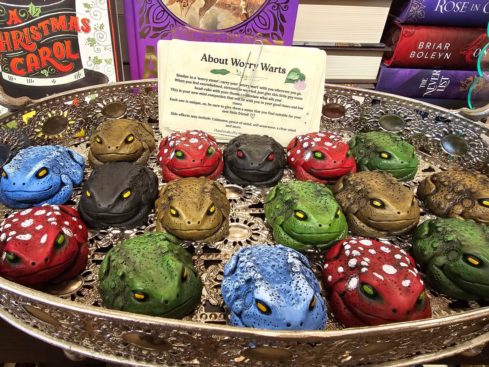 Similar to a “worry stone”; carry your “worry wart” with you wherever you go.  Don’t forget to include your desired colors for your worry wart in your order notes! You can also find the specific pictured worry warts for purchase at Black Bird Magical Tea & Tales located on 191 SE 5th Street in Madras, Oregon.